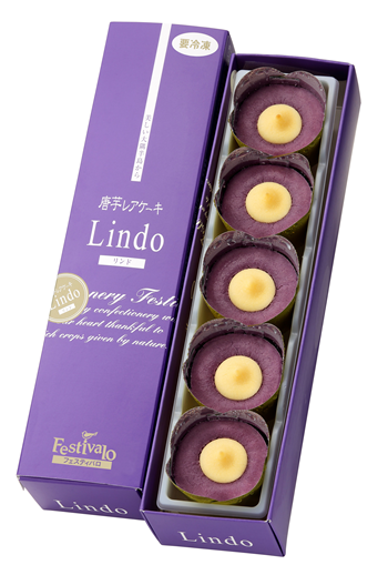 アントシアニンやポリフェノールなど、健康機能性成分をたっぷり含む紫の唐芋。それを素材にした唐芋レアケーキ「リンド」は、紫の個体に黄金色の唐芋を冠した優雅な彩りで、味も風味も優雅そのもの。
