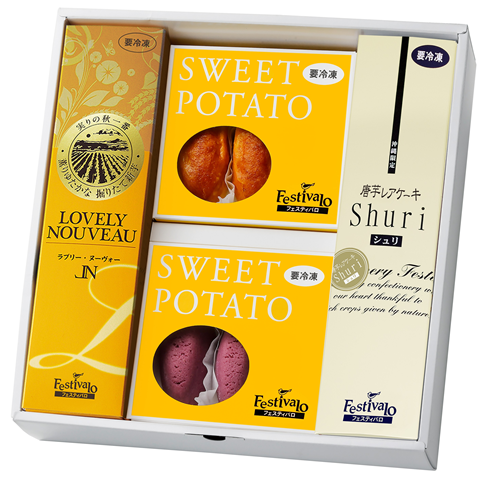 | 内容量 | ■お詰合せ商品■ ラブリーヌーヴォー5個入×1、シュリ5個入×1、スイートポテト黄金3個箱×1、スイートポテト紫3個箱×1 |