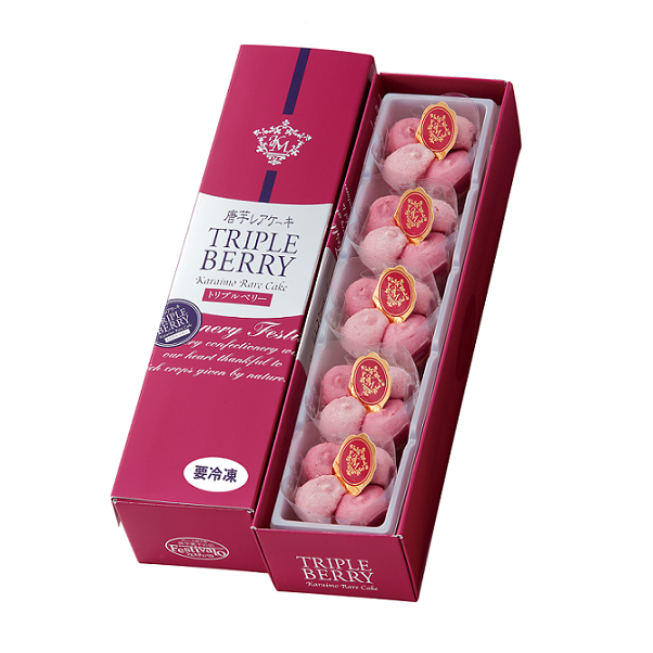 「ブルーベリー」とクリームチーズの酸味がマッチした唐芋レアケーキラブリーの生地の上に、香り高い「ラズベリー」とあまおう苺を使用した爽やかな「ストロベリー」のクリームが溶け合うレアケーキです。