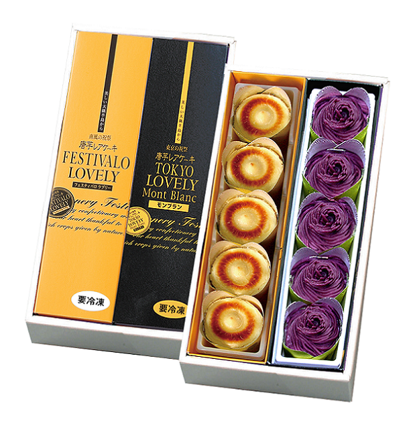 フェスティバロ人気No.1「ラブリー」と、ラブリーをベースに珍しい紫の唐芋に南九州産の<栗>をブレンドし、モンブラン状に重ね、一サジで二つの風味を楽しめる、とっても贅沢なケーキ「東京ラブリーモンブラン」をギフトセットにいたしました。