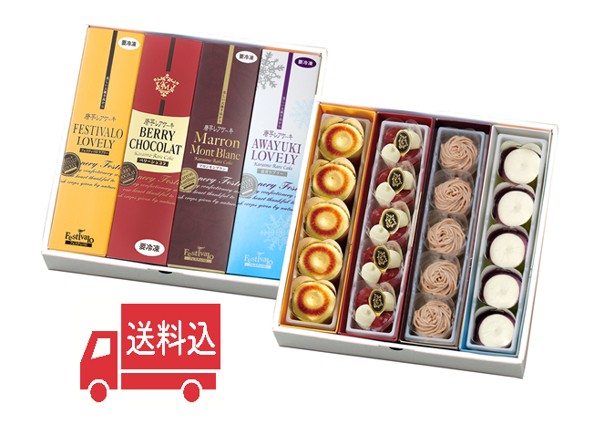 | 内容量 | ■お詰合せ内容■ ラブリー5個入×1、ベリーショコラ5個入×1、マロンモンブラン5個入×1、淡雪ラブリー5個入×1 |