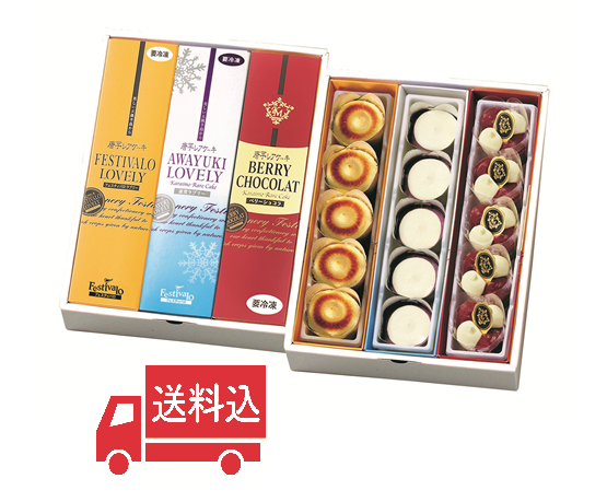 当店人気No.1「ラブリー」、アントシアニンをたっぷり含んだ紫芋生地に、北海道産のきめ細かくなめらかなクリームチーズを組み合わせ、口の中でとろけるような食感に仕上げた「淡雪ラブリー」、濃厚ショコラと二層になった「ラブリー」の上に、あまおう苺の自家製コンフィチュールとホワイトチョコでデコレートしたミニパフェ「ベリーショコラ」を詰め合わせたギフトです。