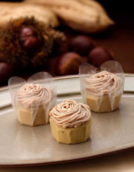 フランス・アルデッシュ産の栗を使用したマロンクリームと栗本来の風味を生かしたマロンピューレを生クリームとブレンドし、芋感を強く感じられるしっかりとしたマロンペースト入りの生地の上に絞りました。